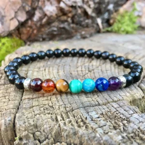 Bracelet 7 chakras « Protection » Tourmaline noire – Argent 925 – 6 mm