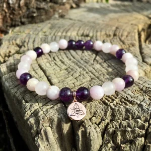 Bracelet « Amour » Améthyste, Kunzite et Quartz rose – 6mm