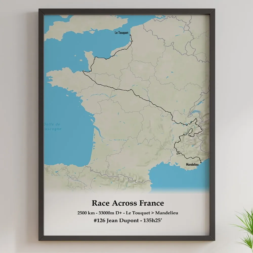 Cette affiche du parcours de la Race Across France est imprimée sur du papier 100% recyclé.