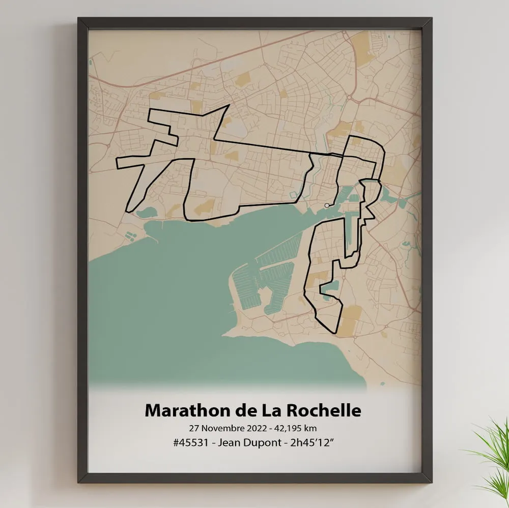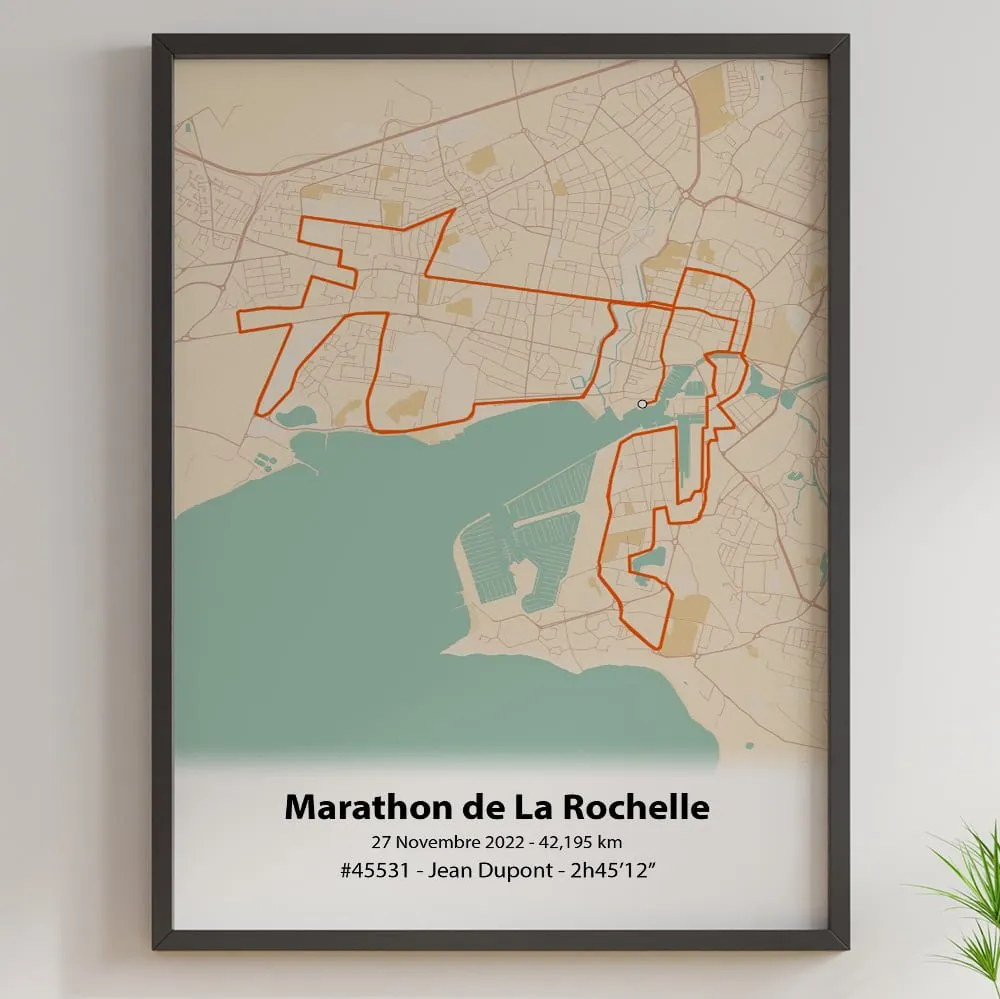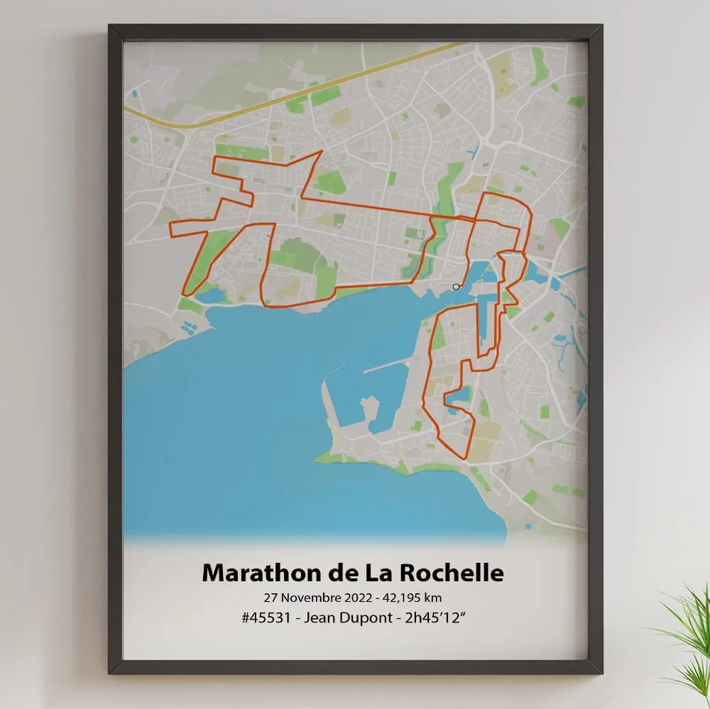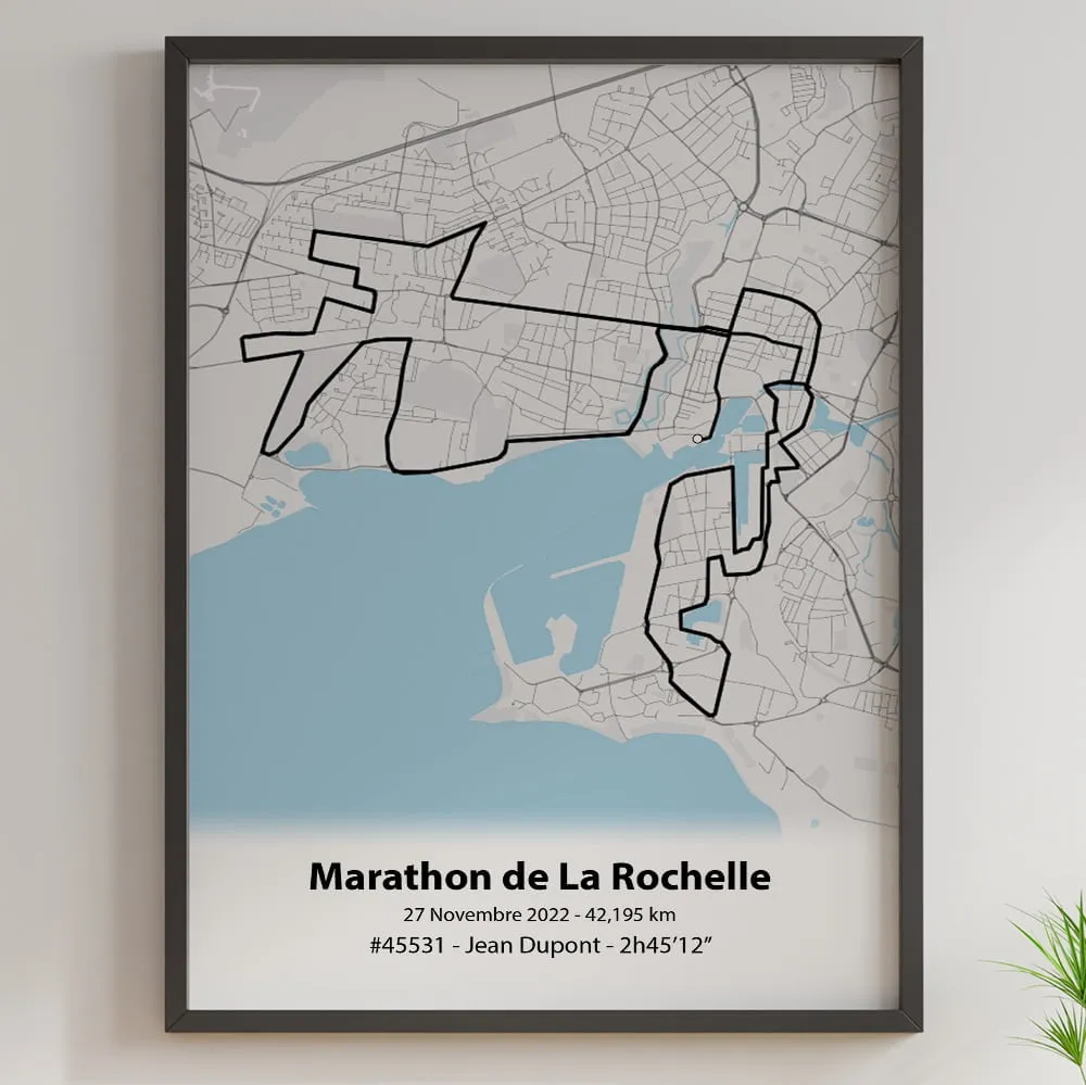 Cette affiche du parcours du marathon de La Rochelle est imprimée sur du papier brillant haute qualité.