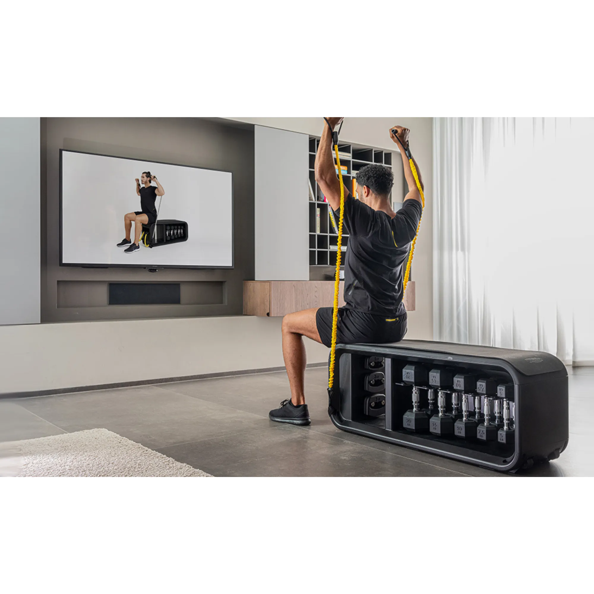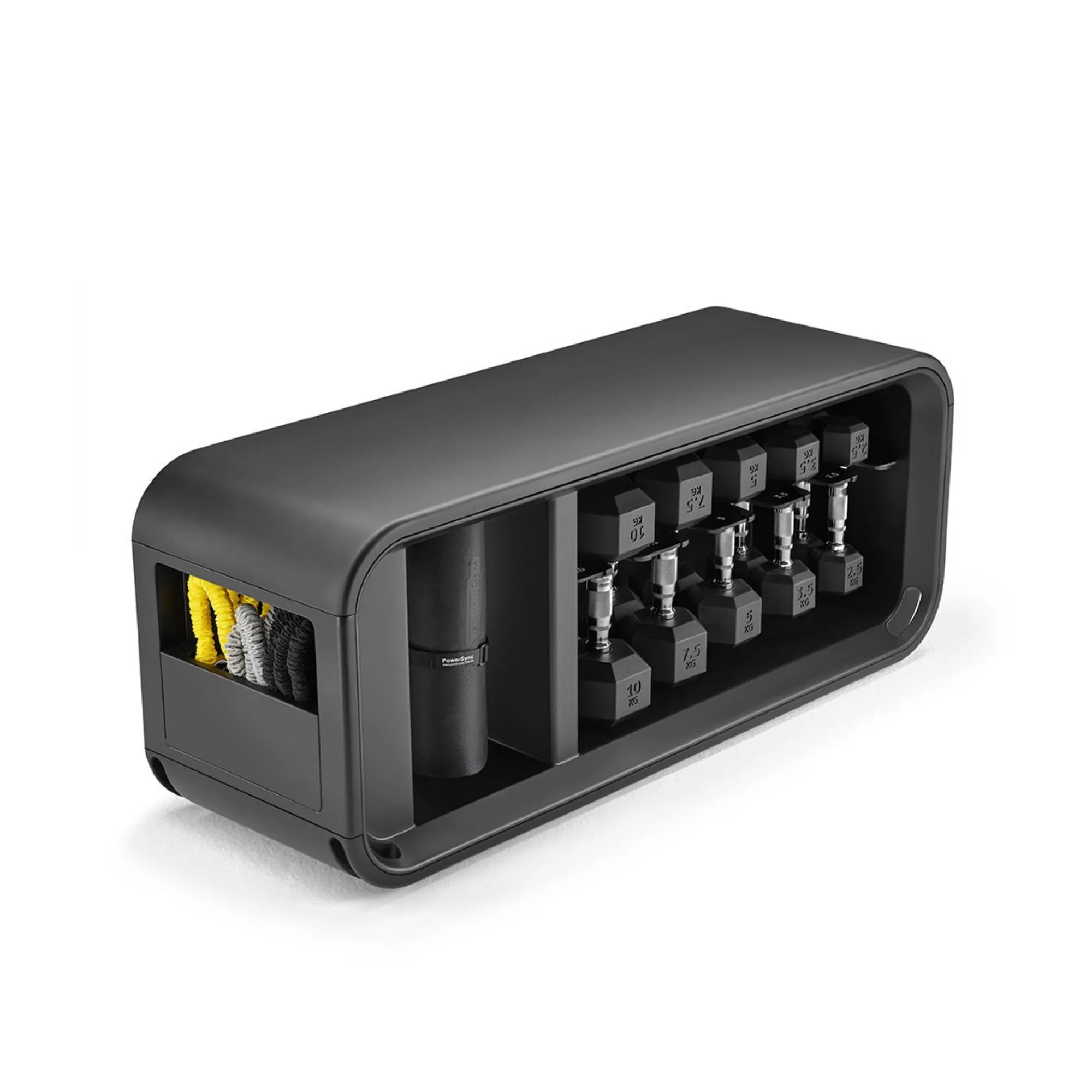 Grâce au banc Technogym Bench de chez Technogym réalisez de nombreux exercices avec des haltères hexagonaux, des bandes de résistance, des poids lestés et un tapis d’entraînement. Le banc Technogym Bench regroupe des poids lestés pour booster votre séance d’entraînement, des bandes de résistance pour une grande variété d’exercices et des intensités différentes, 5 paires d’haltères hexagonaux pour travailler votre musculation ainsi qu’un tapis d’entraînement pour assurer confort et stabilité pendant vos exercices.