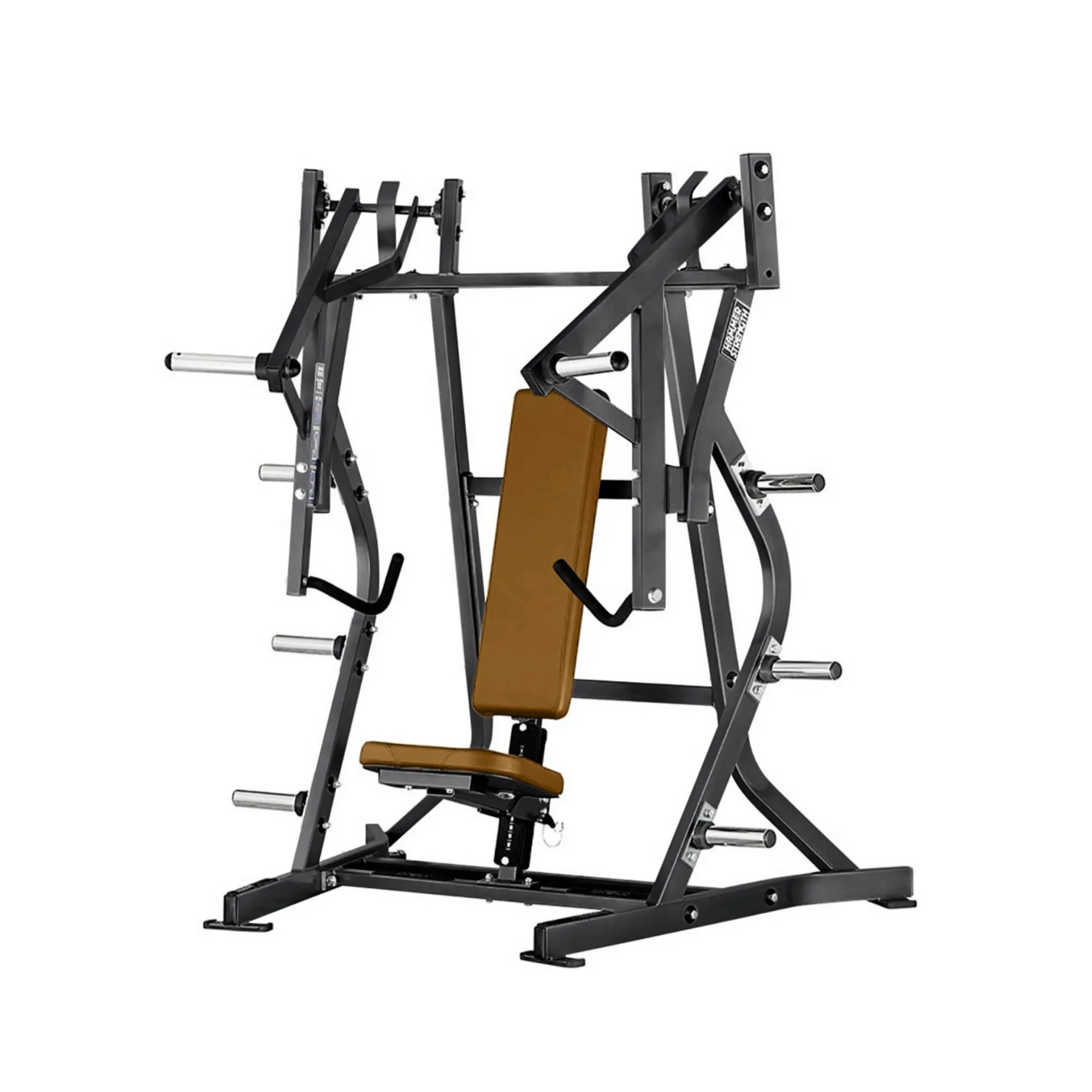 Le banc Iso-Lateral Bench Press de chez Hammer Strength est un appareil de musculation à charges libres. Le banc Iso-Lateral Bench Press de chez Hammer Strength permet de réaliser des mouvements divergents et convergents indépendamment afin de développer équitablement vos groupes musculaires. Les poignées verticales et horizontales reprennent le modèle des bancs traditionnels. Afin de stocker vos disques de poids le banc est doté de 6 supports de poids intégrés.