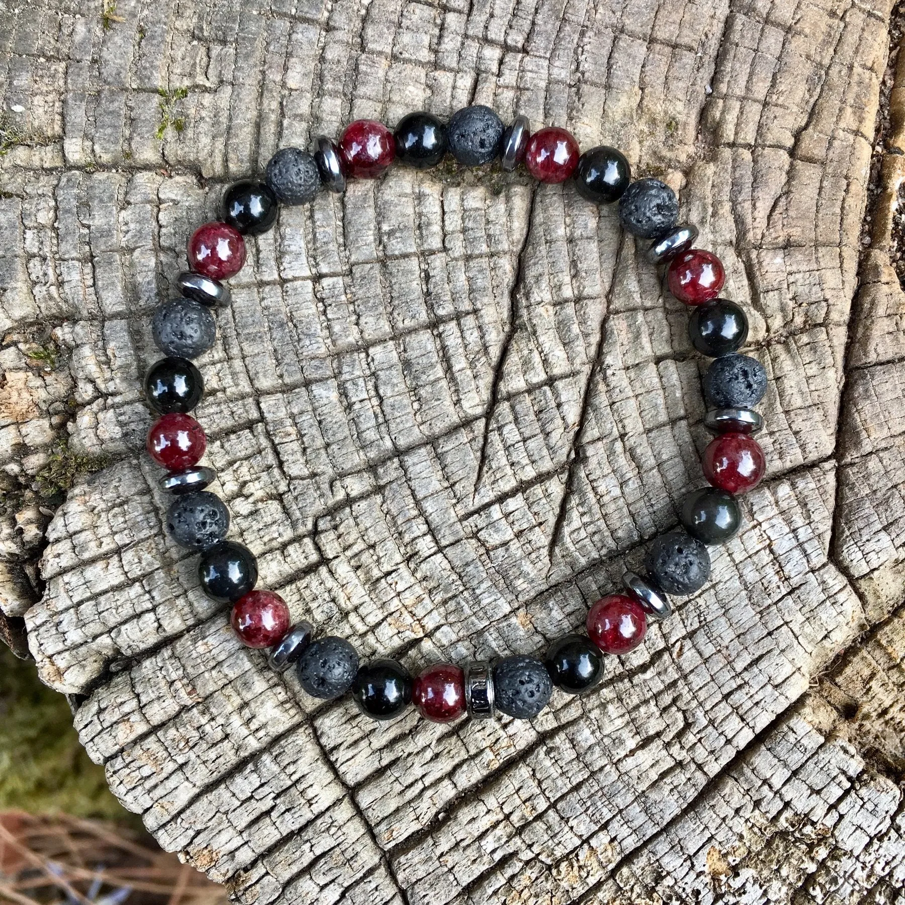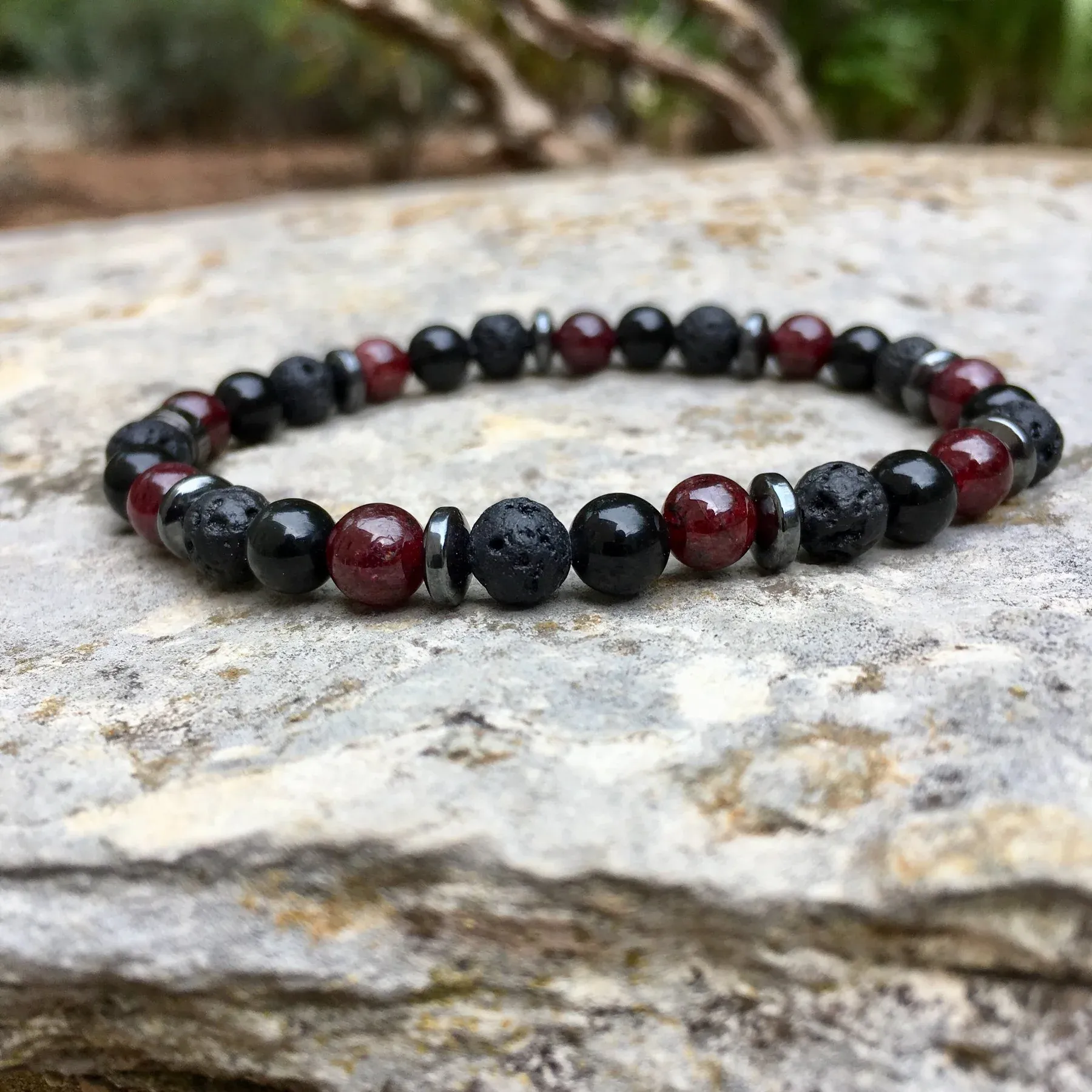 Bracelet « Confiance & Protection » Grenat, Tourmaline, Pierre de lave – 6mm