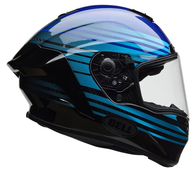 - Coque carbone 3K : La coque 100% carbone du casque moto Bell Race Star lui procure le look et la sensation d’avoir un véritable casque de course.