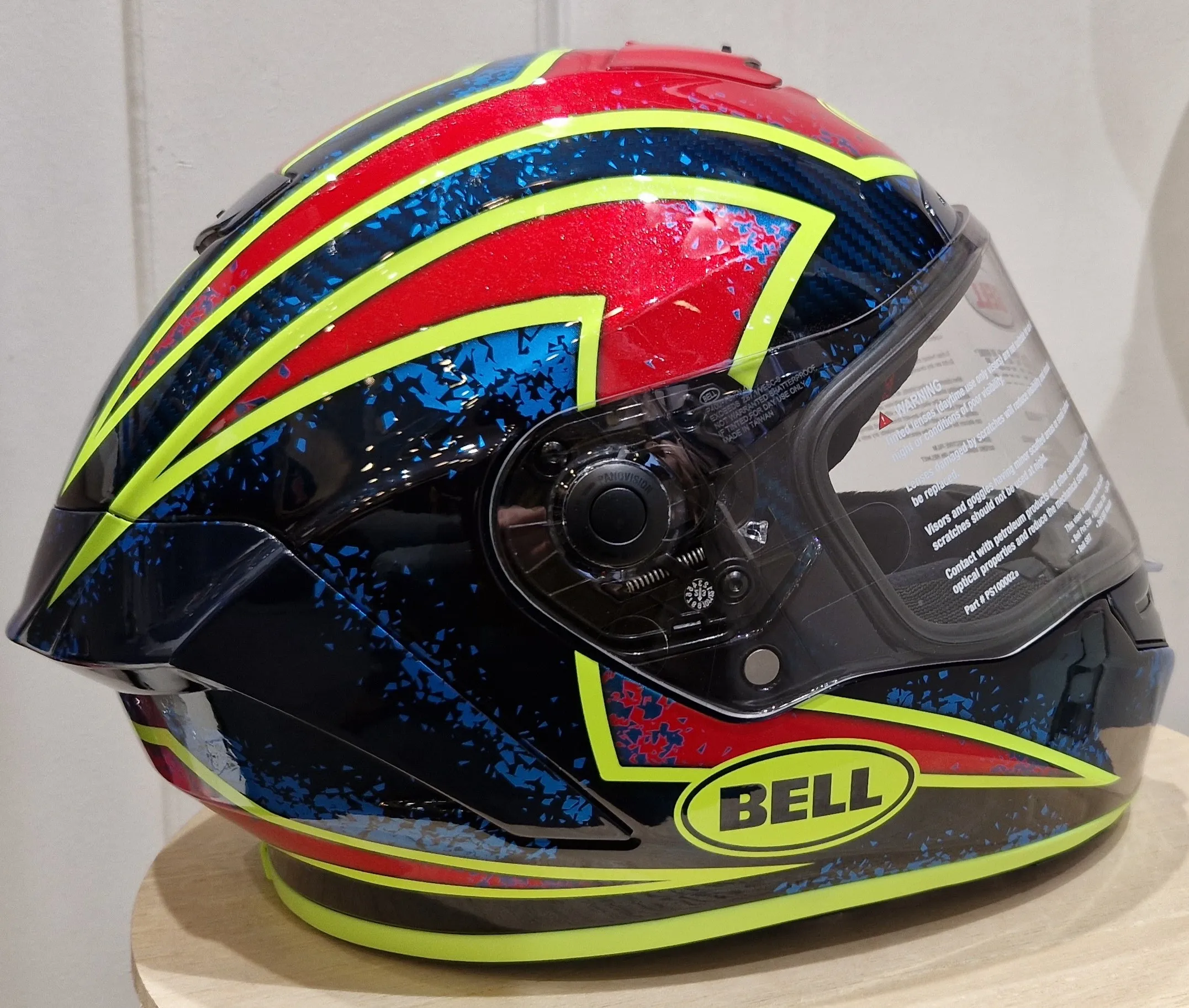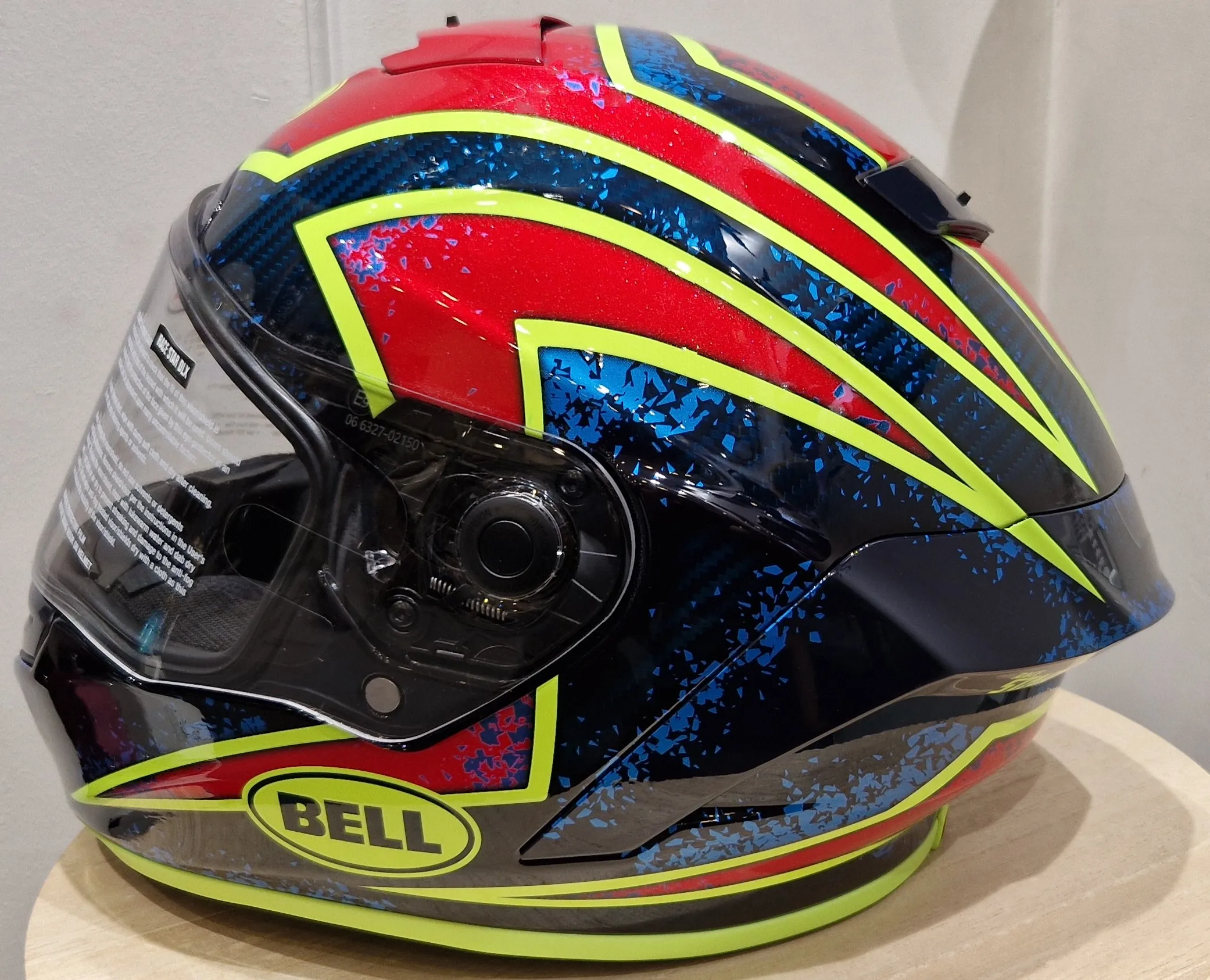 - Coque carbone 3K : La coque 100% carbone du casque moto Bell Race Star lui procure le look et la sensation d’avoir un véritable casque de course.