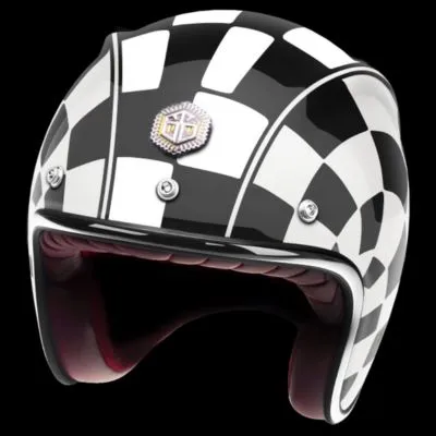 Le casque «  »Jet Open Face » est équipé de 3 pressions pour adapter (en option) une visière couvrante, ou bien une casquette lui donnant un aspect plus retro. La patte en cuir à l’arrière du casque, permet d’adapter un masque aviateur avec sa sangle en cuir.