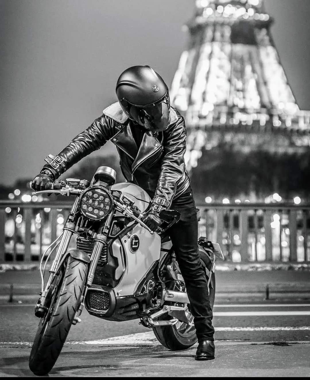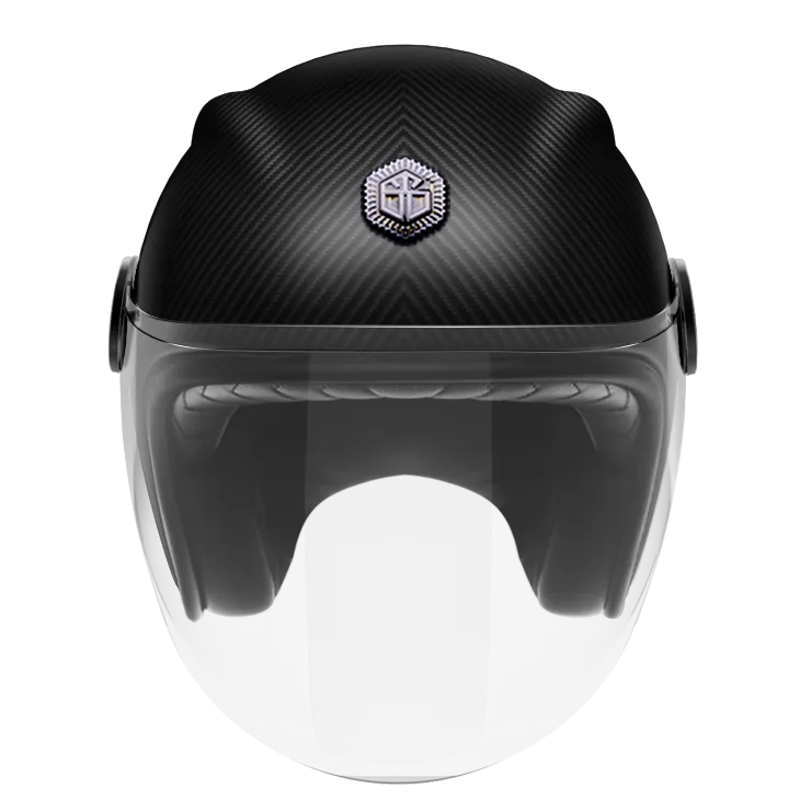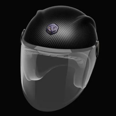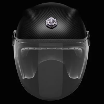 Nous retrouvons la forme caractéristique du jet Guang avec les deux “Cornes de dragon“ présentes de chaque côté du haut du casque, la coque en carbone renforcé héritage des industries aéronautique et spatiale, le jonc chromé ou la bordure cuir parfaitement ajusté, le cuir intérieur soyeux mélangé à la suédine, la fermeture double D et cette fameuse visière fixée par deux belles platines.