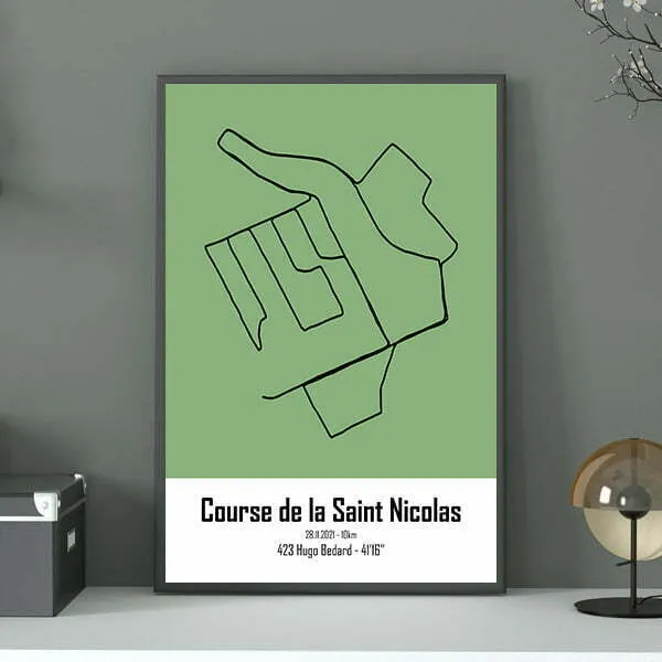 Cette affiche design de la trace de la course de la Saint-Nicolas à Nancy st imprimée sur du papier 100% recyclé.