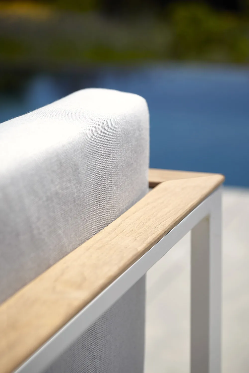 Finition teckLa combinaison de l’aluminium thermolaqué avec des accoudoirs et des sièges en teck naturel ajoute une touche chaleureuse. |