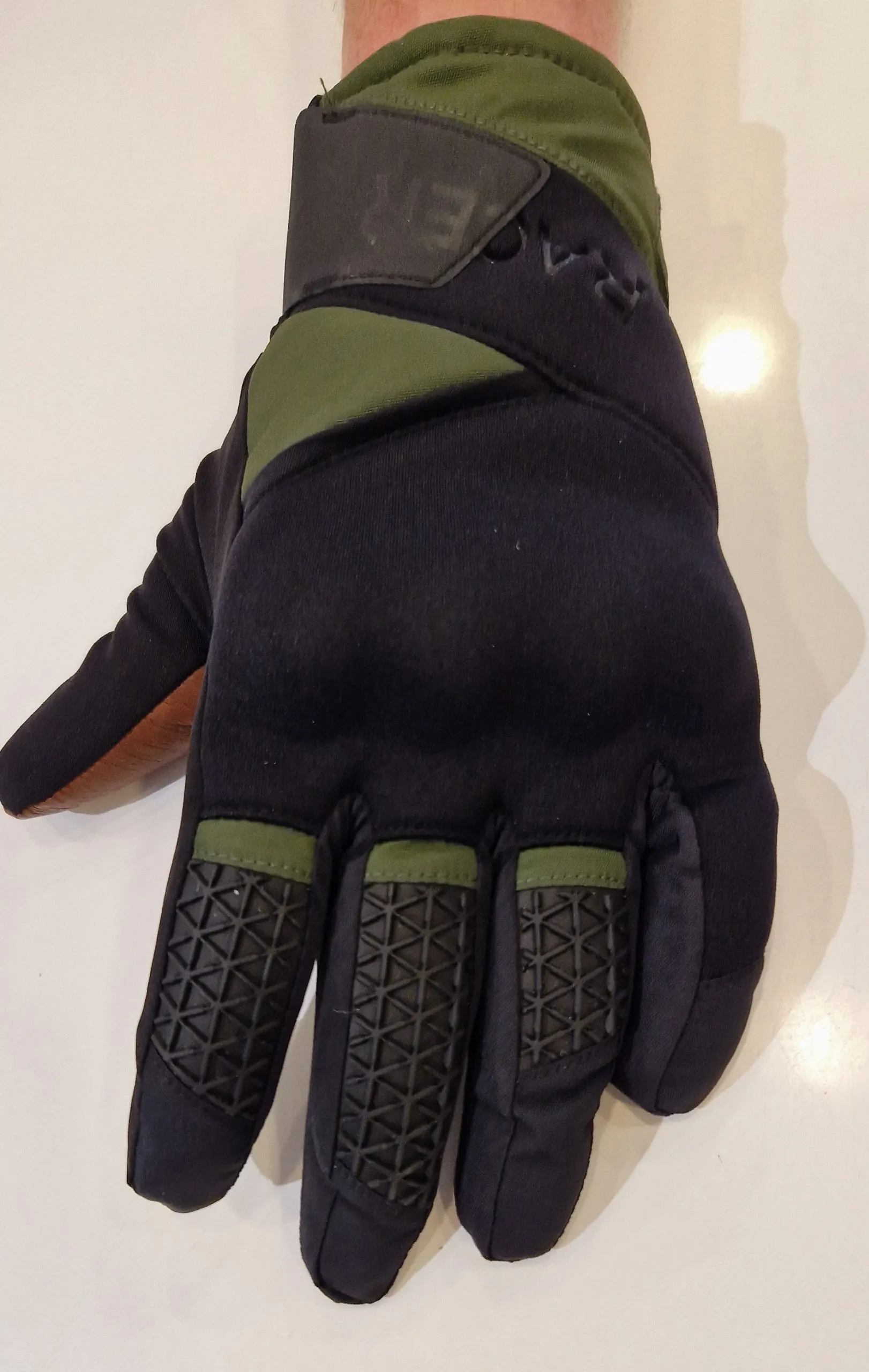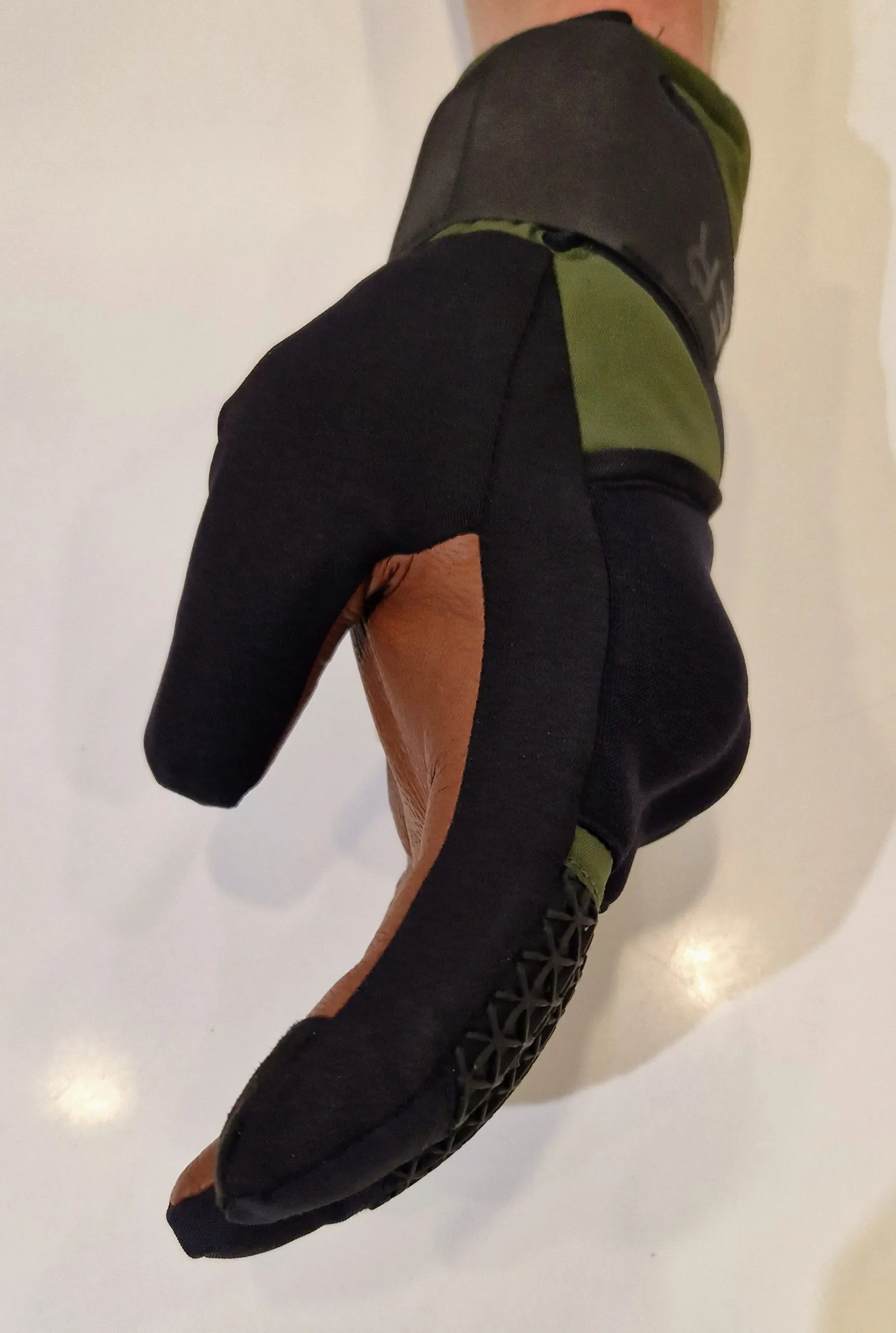 Gants Noir et kaki, paume en cuir camel