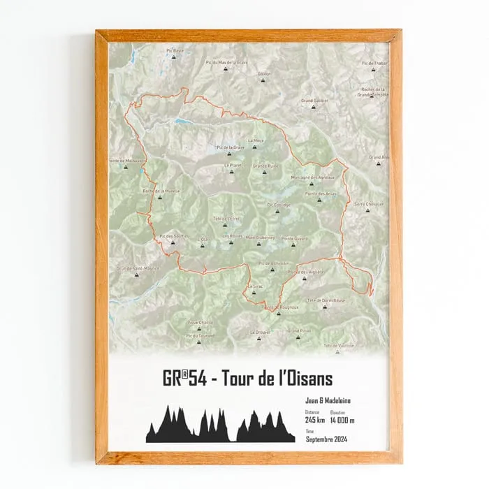 Cette affiche du parcours du GR54 : Tour de l’Oisans est imprimée sur du papier brillant haute qualité.