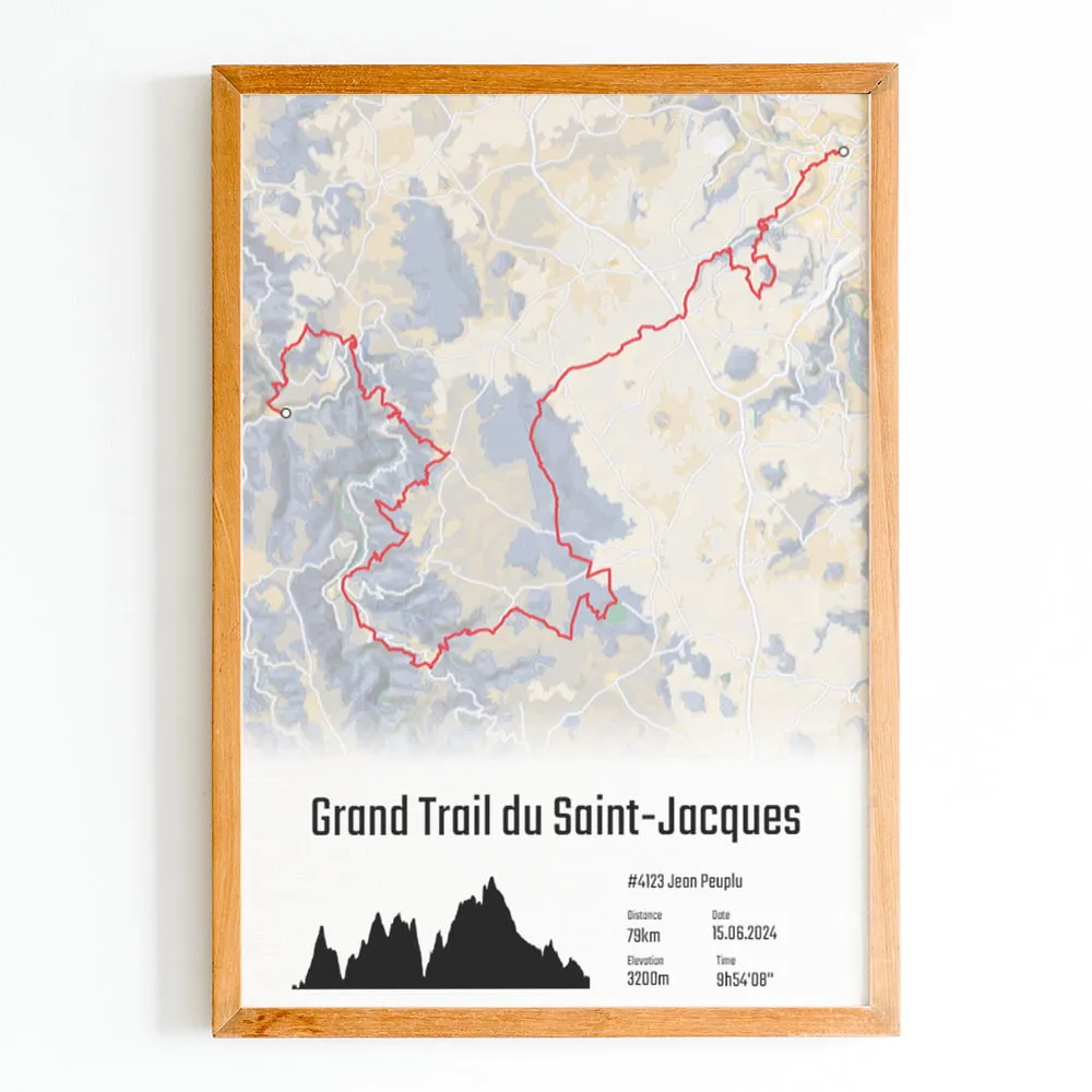 Cette affiche du parcours du Grand Trail du Saint-Jacques est imprimée sur du papier photo brillant haute qualité.