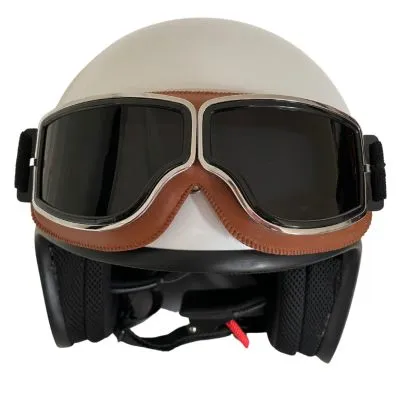 Lunettes vintage pouvant s’adapter sur tout modèle de casque jet muni d’une patte à l’arrière du casque.