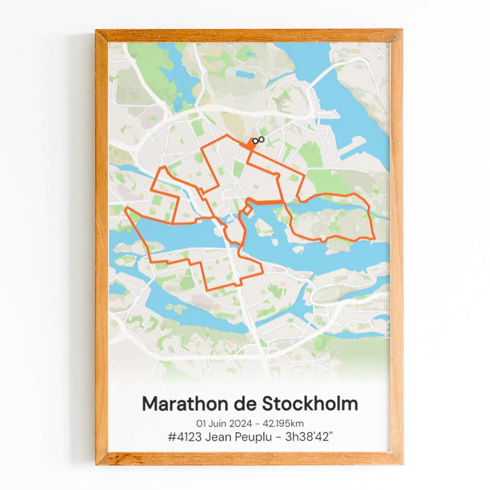 Cette affiche du parcours du marathon de Stockholm est imprimée sur du papier brillant haute qualité.