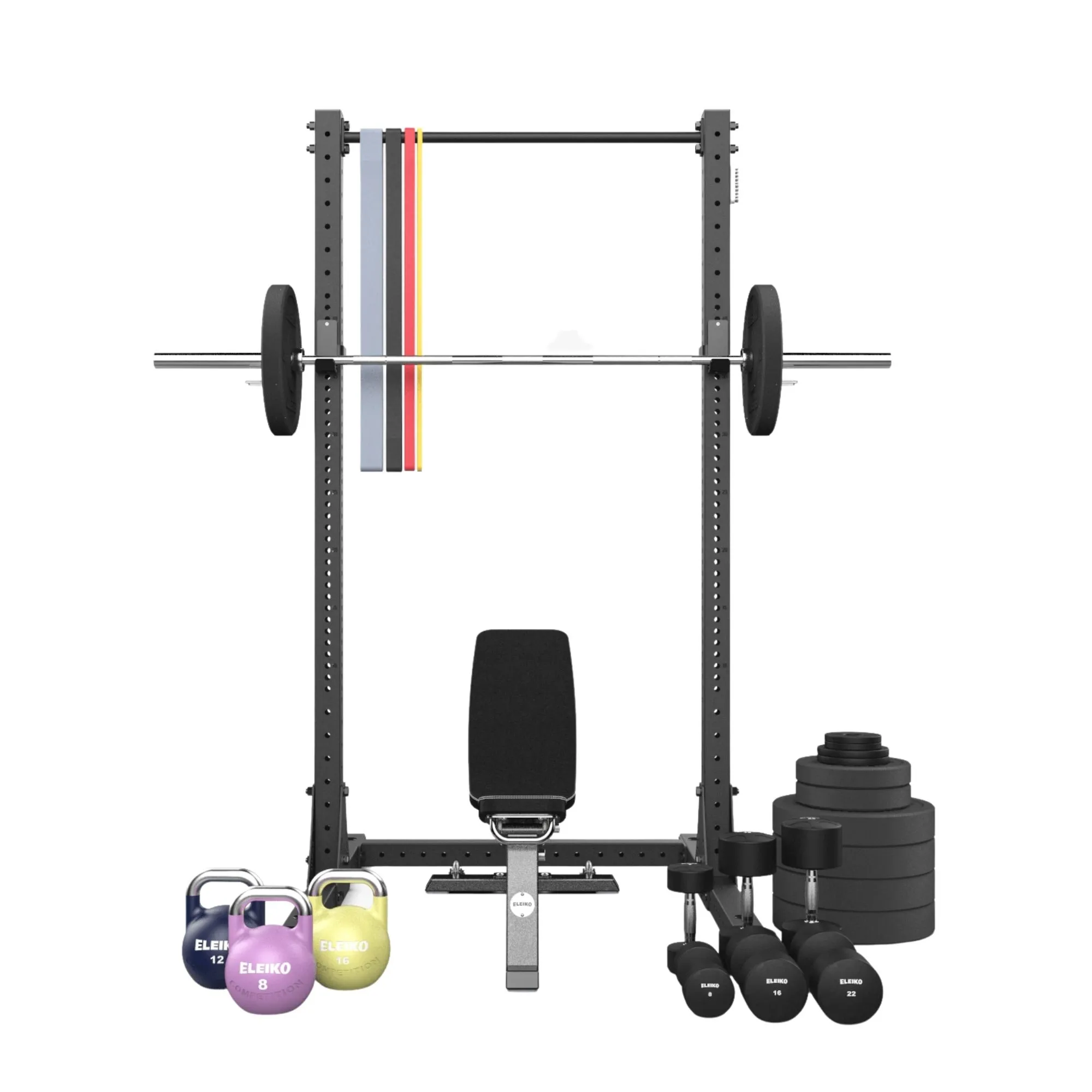 Home Kit Functional de chez Eleiko est un kit d’entraînement très complet spécialement conçu pour une utilisation à domicile. Home Kit Functional est un appareil compact qui permet de varier les entrainements dans un espace limité. Pour plus de possibilités ajoutez un banc ajustable à cette configuration.