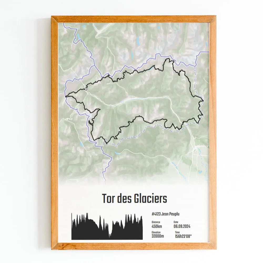 Cette affiche du parcours du Tor des Glaciers® est imprimée sur du papier photo brillant haute qualité.