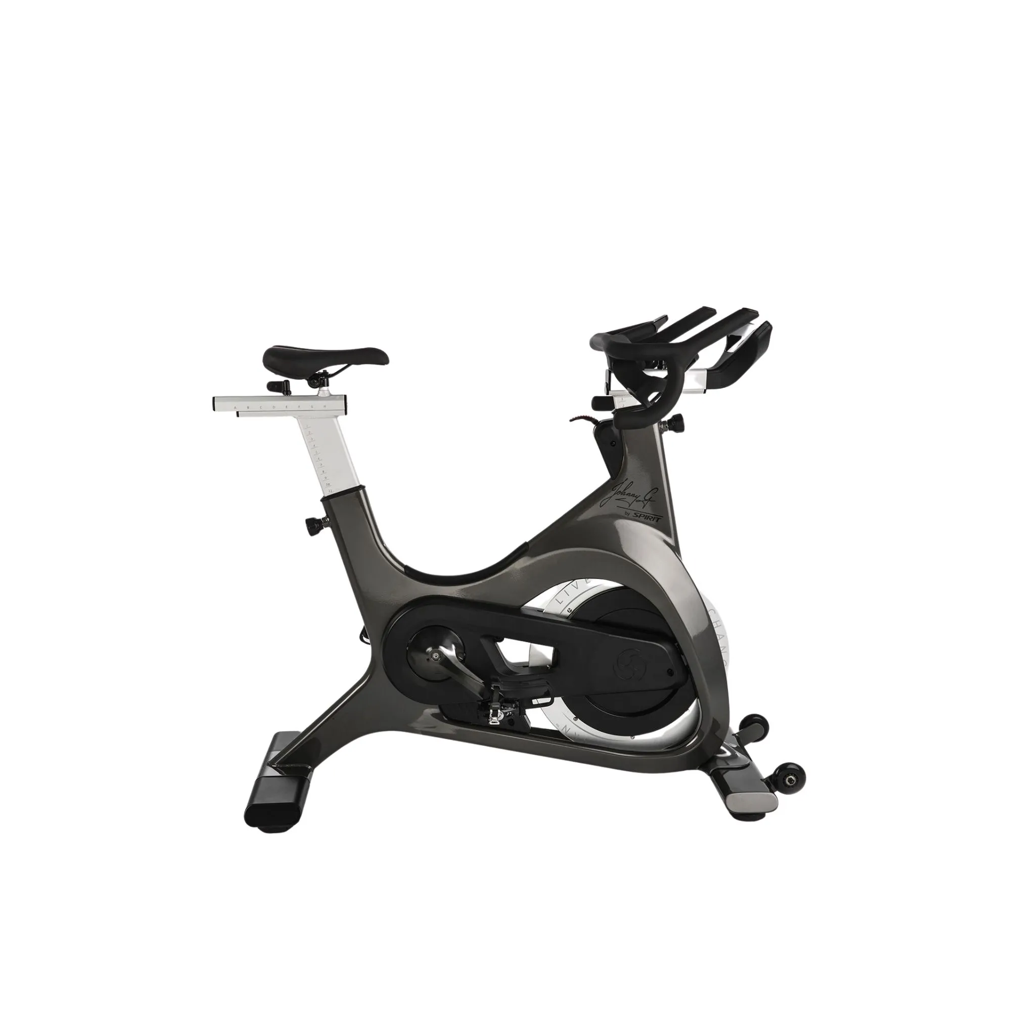 Le vélo de spin bike Johnny G de chez Spirit Bike est un vélo au design élégant, aux finitions parfaites et à la technologie innovante. La géométrie du châssis assurera une stabilité maximale tout au long de votre entrainement. Le système à double courroie du vélo de spin bike Johnny G de chez Spirit Bike vous procurera la sensation et la capacité de réaction d’un vélo de route. Une conception brevetée et des commandes de résistance à portée de main, assureront un confort quelle que soit votre position.