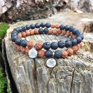 Bracelet double « Calme et Courage » Pierre de lave et Rudraksha – 6 mm