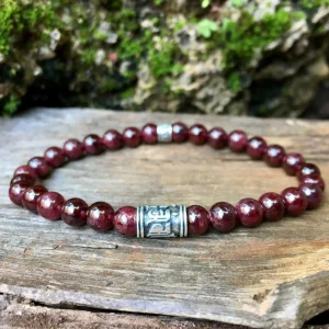 Bracelet Bouddhiste « Confiance » Grenat – Argent 925 – 6 mm