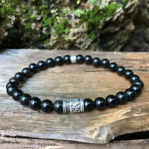 Bracelet Bouddhiste « Protection » Tourmaline noire – Argent 925 – 6 mm