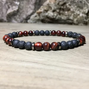 Bracelet « Courage » Oeil de Tigre et Pierre de lave – 6 mm
