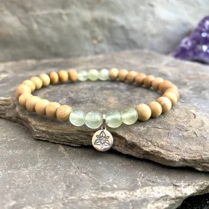 Bracelet Premium « Bien-être et Guérison » Préhnite et Bois de Santal – 6 mm