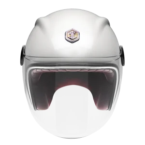 CASQUE JET GUANG Rivoli Blanc Glossy – Intérieur Cuir bordeau, Bord cuir Noir / TAILLE : M